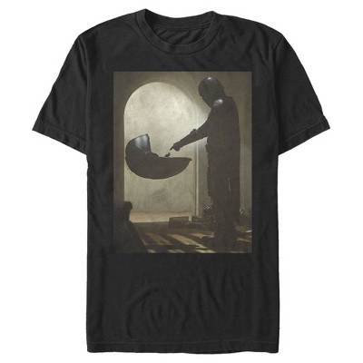 Is that a Baby Yoda? It couldn't be because this little nugget of cuteness was born after the Battle of Yavin and Yoda was born almost 900 years before that! But the similarity sure is striking isn't it? You'll be the envy of the galaxy in this Star Wars The Mandalorian The Child and Bounty Hunter Connection Made Men's Tee. Bounty hunting may be a complicated profession but figuring out how to dress yourself in the morning just got a little easier.