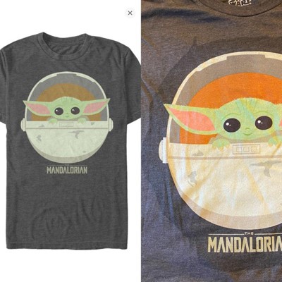 Is that a Baby Yoda? It couldn't be because this little nugget of cuteness was born after the Battle of Yavin and Yoda was born almost 900 years before that! But the similarity sure is striking isn't it? You'll be the envy of the galaxy in this Star Wars The Mandalorian The Child Cartoon Art Bassinet Men's Tee. Bounty hunting may be a complicated profession but figuring out how to dress yourself in the morning just got a little easier.