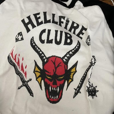 Men's Stranger Things Hellfire Club Costume Baseball Tee - White/Black - Medium