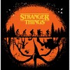 Turn your world upside down with this officially licensed Stranger Things Season 4 Men's Graphic T-Shirt! Your favorite 1980s-inspired Netflix television series is taking you back to Hawkins, Indiana to fight the evil creature, Vecna, who is terrorizing Max and other traumatized members of the town! Blast your favorite song and wear this awesome tee to fight the curse of Vecna today. This men's tee features a cool graphic of both the real world and the upside down with the silhouettes of Eleven, Lucas, Mike, Dustin, Max, Will, and the monsters from the upside down the Demogorgon, Demobat Mind Flayer with a cool orange background!