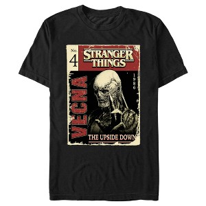 Turn your world upside down with this officially licensed Stranger Things Season 4 Men's Graphic T-Shirt! Your favorite 1980s-inspired Netflix television series is taking you back to Hawkins, Indiana to fight the evil creature, Vecna, who is terrorizing Max and other traumatized members of the town! Blast your favorite song and wear this awesome tee to fight the curse of Vecna today. This men's tee shows off Vecna in a vintage comic book style that reads "No.4 Vecna 1986 The Upside Down" across the front.