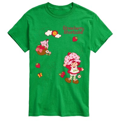 Men's Strawberry Shortcake Wheelbarrow And Custard Short Sleeve Graphic T-Shirt - Forest Green - 3 X-Large