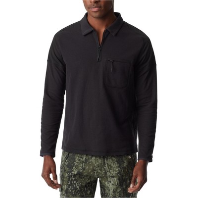 Men's Striped Print Polo Shirt Long Sleeve Collared T-Shirt Casual Color Block Golf Top,S,Black