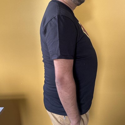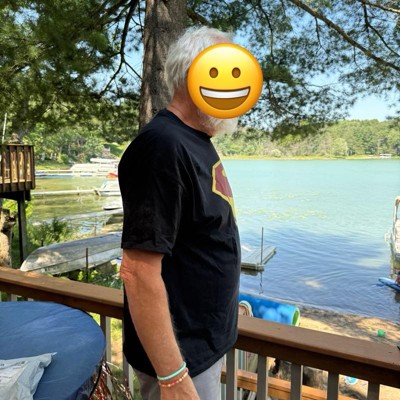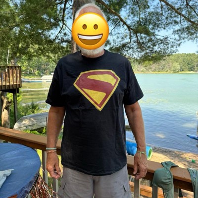 [This review was collected as part of a promotion.] This Superman graphic T-shirt was a great gift for my dad. My dad is 6‘5“ tall and 250 pounds. I purchased this for him in a two XL and it fit perfectly. I bought this one in the color black. The T-shirt itself is super soft and comfortable to wear. The graphic on the front chest is also smooth in texture. The sleeves are a perfect length as well as the torso area. This is easy to maintain by throwing in the washer and dryer. I received an incentive to write this review.