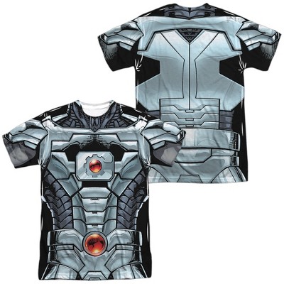 Men's Teen Titans Go Cyborg Uniform Front Back Print Long Sleeve Costume T-Shirt, White, Small