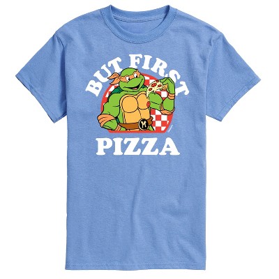 Teenage Mutant Ninja Turtles - But First Pizza - Men's Short Sleeve Graphic T-Shirt - Unleash your inner hero with Teenage Mutant Ninja Turtles graphic apparel, featuring bold and colorful designs of the iconic heroes in a half shell—Leonardo, Donatello, Raphael, and Michelangelo. Perfect for fans of all ages, this collection celebrates the action-packed adventures, brotherhood, and fun-loving spirit of these legendary sewer-dwelling ninjas.