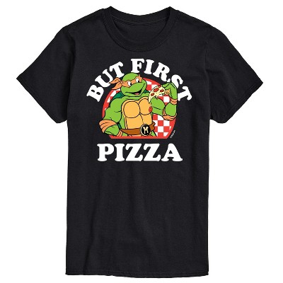 Teenage Mutant Ninja Turtles - But First Pizza - Men's Short Sleeve Graphic T-Shirt - Unleash your inner hero with Teenage Mutant Ninja Turtles graphic apparel, featuring bold and colorful designs of the iconic heroes in a half shell—Leonardo, Donatello, Raphael, and Michelangelo. Perfect for fans of all ages, this collection celebrates the action-packed adventures, brotherhood, and fun-loving spirit of these legendary sewer-dwelling ninjas.