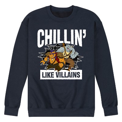 Teenage Mutant Ninja Turtles - Chillin Like Villains - Men's Crew Neck Fleece Pullover - Unleash your inner hero with Teenage Mutant Ninja Turtles graphic apparel, featuring bold and colorful designs of the iconic heroes in a half shell—Leonardo, Donatello, Raphael, and Michelangelo. Perfect for fans of all ages, this collection celebrates the action-packed adventures, brotherhood, and fun-loving spirit of these legendary sewer-dwelling ninjas.