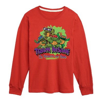 Teenage Mutant Ninja Turtles Mutant Mayhem - Train Insane - Men's Short Sleeve Tee - Unleash your inner hero with Teenage Mutant Ninja Turtles graphic apparel, featuring bold and colorful designs of the iconic heroes in a half shell—Leonardo, Donatello, Raphael, and Michelangelo. Perfect for fans of all ages, this collection celebrates the action-packed adventures, brotherhood, and fun-loving spirit of these legendary sewer-dwelling ninjas.