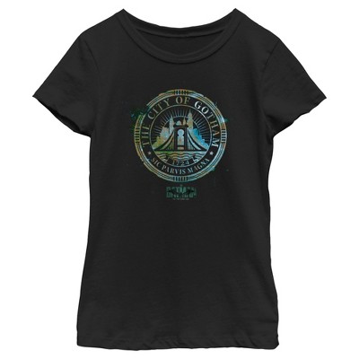 The citizens of Gotham City never need fear as long as this officially licensed DC Comics The Batman style is around! This Mens' Tee features a birds-eye view of Gotham City and a large red bat logo of the center. Don't leave Gotham in the dark and get this tee today!