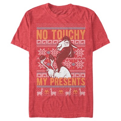 Kuzco HATES being touched but he sure loves the Disney Emperor's New Groove Kuzco No Touchy Men's Long Sleeve T-Shirt! Llama Kuzco is portrayed in distressed text alongside "No Touchy" on this funny Kuzco shirt.