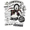 Head to Goon Ducks with the whole gang to help them to save their homes and discover the long-lost treasure with this officially licensed The Goonies Chunk Truffle Shuffle Men's Baseball T-Shirt. This comfy tee features a graphic of Chunk doing the funny truffle shuffle dance across the front, surrounded by iconic quotes and symbols from the movie. Grab one of these tees today and remember "Goonies never say die!"