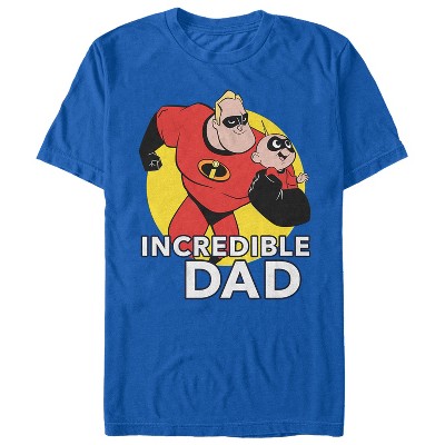 Bob is learning that being a parent is heroic when "done properly" so he deserves The Incredibles 2 Modern Incredible Dad Men's T-Shirt for his hard work. A cool geometric print shows off Mr. Incredible, Elastigirl, Violet, and Dash alongside "Incredible Dad" on this cool Incredibles shirt.