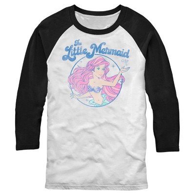 Men's The Little Mermaid Ariel Watercolor Signature Baseball Tee - White/Black - Large