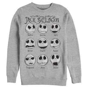 Make your way down to Halloweentown for some frighteningly good times with the Pumpkin King of Halloweentown himself, Jack Skellington, with fa-boo-lous new officially licensed apparel for the whole family from Disney's beloved film The Nightmare Before Christmas! This Men's Graphic Crewneck Sweatshirt features a grid of your favorite Pumpkin King, Jack Skellington, and his emotions printed across the front. Grab one of these new styles today and represent your favorite Disney movie!