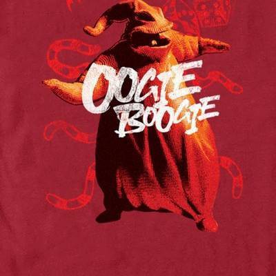 • Strut your stuff with this stylish new everyday men's t-shirt that is perfect for every occasion! Featuring a happy Oogie Boogie dancing, with bats, worms, and dice in the background and his name printed across the center.