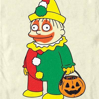 Mhmmm donuts… mhmm officially licensed The Simpsons styles. Show off your favorite animated series with hilarious officially licensed apparel for this season featuring everyone's favorite dysfunctional family! This Men's The Simpsons Halloween Clown Ralph Graphic T-Shirt features a cute Ralph dressed up for Halloween as a clown. If anyone tries to steal your fashion this Halloween, then just tell them to "eat my shorts" because you're not giving up this classic style from The Simpsons!