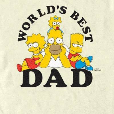 • Strut your stuff with this stylish new Father's Day men's t-shirt that is perfect for dad! Featuring Homer Simpson lying down on the floor alongside Lisa and Bart with Maggie above his head, and the phrase "World's Best Dad" across the front.