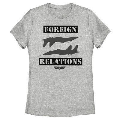 Do you have what it takes to claim the Top Gun Trophy? Then suit up and get ready to join the most elite Navy pilots around like Maverick and Iceman with this officially licensed Top Gun Foreign Relations Men's Tee! Dress in style and rep your favorite aviator movie with this distressed design that features the funny movie quote "Foreign Relations" in red, white, and blue!
