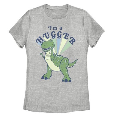 Rex may have short T-Rex arms but he's still a world class hugger on the Pixar Toy Story Valentine Rex Hugger Men's T-Shirt! Your favorite T-Rex is printed below hearts and "I'm a Hugger" on this fun Toy Story Valentine's Day tee.