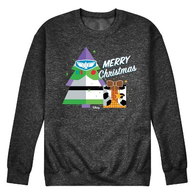 Toy Story - Merry Christmas Toy Story - Men's Crew Neck Fleece Pullover - Round up the gang with Toy Story graphic apparel featuring Woody, Buzz Lightyear, Jessie, Rex, and the whole crew in colorful, heartwarming designs.