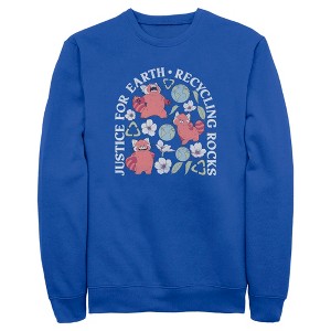 Mei Lee is a 13-year-old girl who is struggling with balancing friends and school and being an obedient daughter, if that weren't enough, she turns into a big red panda when she gets too excited! Join in on all the fun with this officially licensed Men's Recycling Rocks Graphic Crewneck Sweatshirt from Turning Red on Disney+! This tee features the phrase: "Justice for earth recycling rocks," and Mei as her red panda self doing various poses!