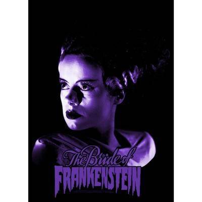 • Strut your stuff with this stylish new Halloween men's tee featuring a hunting purple portrait picture of Frankenstein's Bride along with the Universal Studios Monsters logo below her.