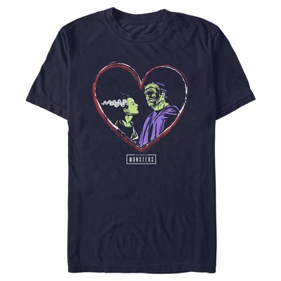 • Strut your stuff with this stylish new Halloween men's tee featuring a hunting purple portrait picture of Frankenstein's Bride along with the Universal Studios Monsters logo below her.
