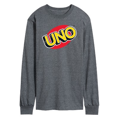 Men's UNO My Kind Of Card Party Long Sleeve Graphic T-Shirt - Heather Charcoal - X-Large