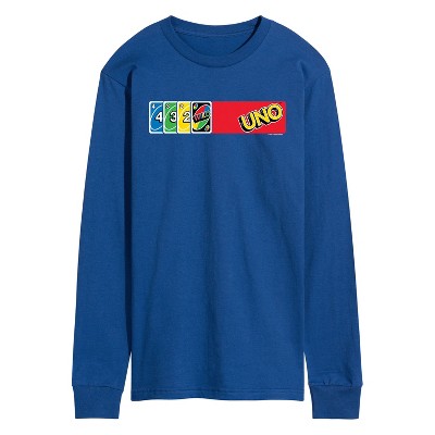 UNO - UNO Rainbow - Men's Long Sleeve T-Shirt - Go bold or draw 4 with UNO graphic apparel featuring the game's iconic colorful cards. It’s a perfect way to show love for one of the most unpredictable (and competitive) games around.