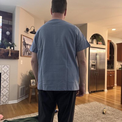 [This review was collected as part of a promotion.] I purchased this short sleeve shirt in a size extra large and I am around 185 pounds. I was really impressed with the look and feel. The fabric is on the heavier side, similar to other pieces I’ve tried and it gives it a nice, sturdy feeling – it is definitely not a lightweight shirt. It would be better suited for cooler weather or layered looks. The blue color is nice and it would pair well with jeans or chinos. Fit wise, the standard cut is comfortable, and it is not too tight; overall, it is a solid T-shirt. I received an incentive to write this review.