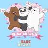 Join your favorite brother bears as they navigate the San Francisco Bay Area and try to find fame on the internet in the hilariously quirky Cartoon Network cartoon We Bare Bears with officially licensed apparel for the whole family! This Men's We Bare Bears Be My Valentine Graphic T-Shirt features Grizzly, Panda, and Ice Bear holding valentines along with the phrase: "Be My Valentine" in white lettering across the front.