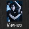 Join Wednesday Addams, the death-obsessed daughter from the iconic Addams Family franchise as she attends Nevermore Academy, hones her psychic abilities, and solves age-old mysteries in the spine-chilling new series Wednesday from Netflix! This officially licensed Wednesday Dance Scene Logo Men's Graphic T-Shirt features a large graphic of the iconic Wednesday dance scene printed across the front along with the series' logo below. Get some new Wednesday designs and embrace the darkness!
