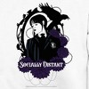Join Wednesday Addams, the death-obsessed daughter from the iconic Addams Family franchise as she attends Nevermore Academy, hones her psychic abilities, and solves age-old mysteries in the spine-chilling new series Wednesday from Netflix! This officially licensed Wednesday Socially Distant Men's Graphic Crewneck Sweatshirt features an artistic illustration of Wednesday framed by a raven, flowers, barbed wire, and the text "Socially Distant" across the front. Get some new Wednesday designs and embrace the darkness!