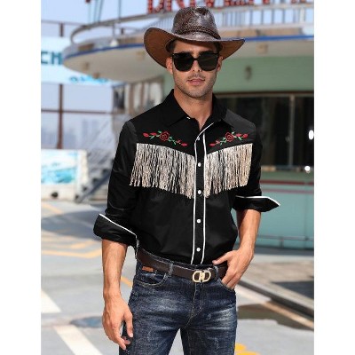 - Retro Embroidery Design: Men's cowboy button down shirt featuring long sleeve, no pockets , embroidery rose, with fringed design.premium details make this vintage western dress shirt perfect and eye catching.