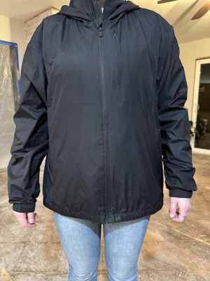 Hooded windbreaker jacket is designed to keep you comfortable during travel and outdoor excursions. Crafted from recycled polyester with lining for a warm yet lightweight feel. Front full-length zipper provides a snug fit and easy layering. Two side pockets offers space for stashing small items. Windproof and waterproof construction helps keep you protected during inclement weather.