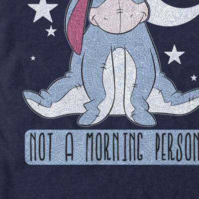 Take a stroll with Christopher Robin through Hundred Acre Wood in this officially licensed Disney Winnie the Pooh Not a Morning Person Men's Tee! This adorable design features Eeyore with one ear over his eye and "Not a morning person" printed below. You will love this new graphic tee almost as much as Winnie the Pooh loves his honey!