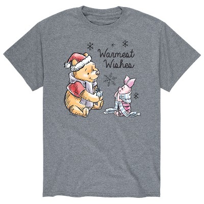 Disney Winnie The Pooh - Pooh & Piglet Warmest Wishes Christmas - Men's Long Sleeve T-Shirt - Step into the Hundred Acre Wood with Winnie the Pooh graphic apparel—featuring Pooh, Tigger, Eeyore, and Piglet in cozy, nostalgic styles for all ages.