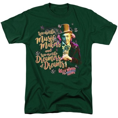 • Strut your stuff with this stylish new men's t-shirt that is perfect for every occasion! Featuring Willy Wonka's silhouette, the iconic chocolate factory, and the official Wonka logo printed across the front.