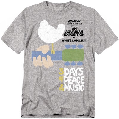 Men's Woodstock Peace And Love T-Shirt, Athletic Heather, Large
