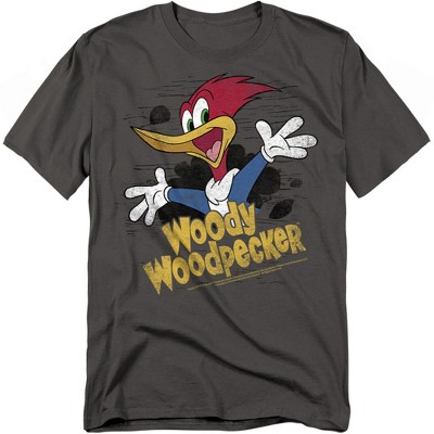 Men’s Woody Woodpecker Retro Logo Long Sleeve T-Shirt Charcoal 2X Large