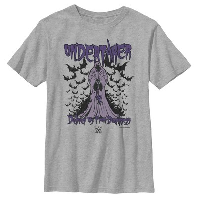 Show your love for all things wrestling with exciting new apparel for the whole family celebrating your favorite entertainers from the past and present from WWE! This Men's WWE Undertaker Deliver Us From Darkness Graphic T-Shirt features a graphic of a grim reaper holding the undertaker logo, with bats and the phrase: "Undertaker Deliver Us from Darkness." Grab some WWE gear today and show up to your next live event in style!