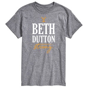 Yellowstone - Beth Dutton Strong - Men's Short Sleeve Graphic T-Shirt - Saddle up with Yellowstone graphic apparel that captures the rugged spirit of the hit series. Featuring bold designs inspired by the Dutton family—John, Beth, Rip Wheeler, Kayce, and more—each piece reflects the grit, loyalty, and high-stakes drama of life on the ranch. Perfect for fans who live for Western toughness and power.