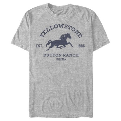 Get ready to head back to the West to watch the Dutton Family endure the dangerous and complicated ordeals of 19th-century Montana ranching life in this officially licensed Yellowstone Est. 1886 John Dutton Portrait Men's Graphic T-Shirt! This unique design features a black-and-white portrait of John Dutton, along with the words: "Yellowstone Est. 1886 Dutton Ranch Montana" printed in distressed letters across the front. Show your love for Yellowstone with this apparel today!