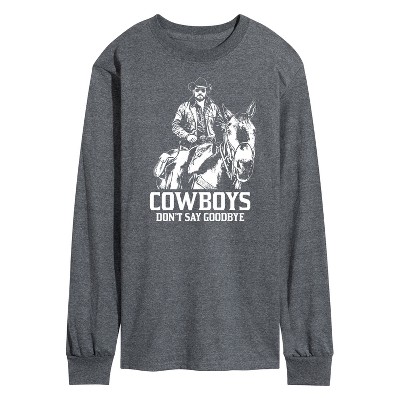 Yellowstone - Rip Cowboys Don't Say Goodbye - Men's Short Sleeve Graphic T-Shirt - Saddle up with Yellowstone graphic apparel that captures the rugged spirit of the hit series. Featuring bold designs inspired by the Dutton family—John, Beth, Rip Wheeler, Kayce, and more—each piece reflects the grit, loyalty, and high-stakes drama of life on the ranch. Perfect for fans who live for Western toughness and power.