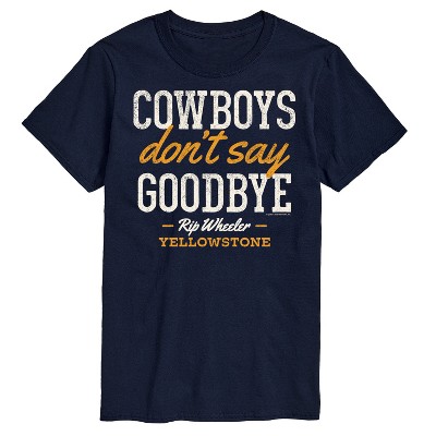 Yellowstone - Rip Cowboys Don't Say Goodbye - Men's Short Sleeve Graphic T-Shirt - Saddle up with Yellowstone graphic apparel that captures the rugged spirit of the hit series. Featuring bold designs inspired by the Dutton family—John, Beth, Rip Wheeler, Kayce, and more—each piece reflects the grit, loyalty, and high-stakes drama of life on the ranch. Perfect for fans who live for Western toughness and power.