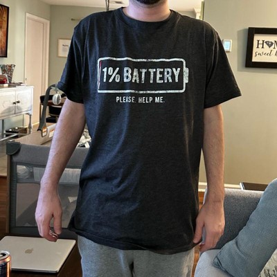 Mens 1% Battery Please Help Me T Shirt Funny Running On Empty Graphic Tee - Crazy Dog Men's T Shirt For Nerds - 1 of 4