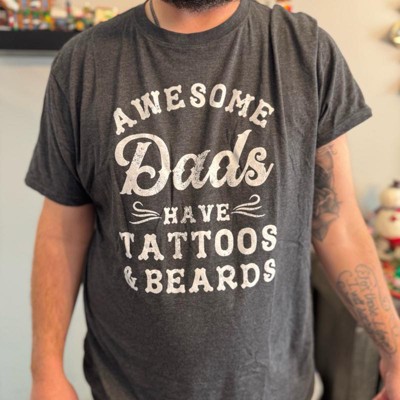 Mens Awesome Dads Have Tattoos and Beards T Shirt Funny Fathers Day Tee - Crazy Dog Men's T Shirt Gift for Dad - 1 of 4
