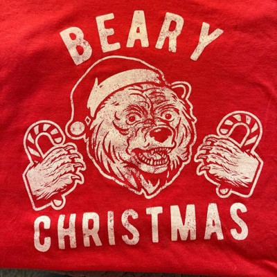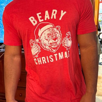 Mens Beary Christmas T Shirt Funny Holiday Party Bear Novelty Graphic Tee - Crazy Dog Men's T Shirt Gift For Christmas Red S