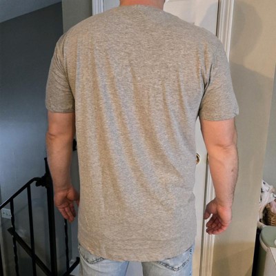 [This review was collected as part of a promotion.] Height 5'10.5". Weight 232. Chest 46.5". Waist 42". Typically wears a 2XL, so I ordered a 2XL. My husband said these are comfortable shirts. They are also lightweight and have stretch to them. I ordered this as a funny Christmas gift idea to wear around the holidays and everyone thought it was HILARIOUS as we have two young girls that are starting to form their own thoughts and perceptions on life. We like that it's at least 60 cotton.